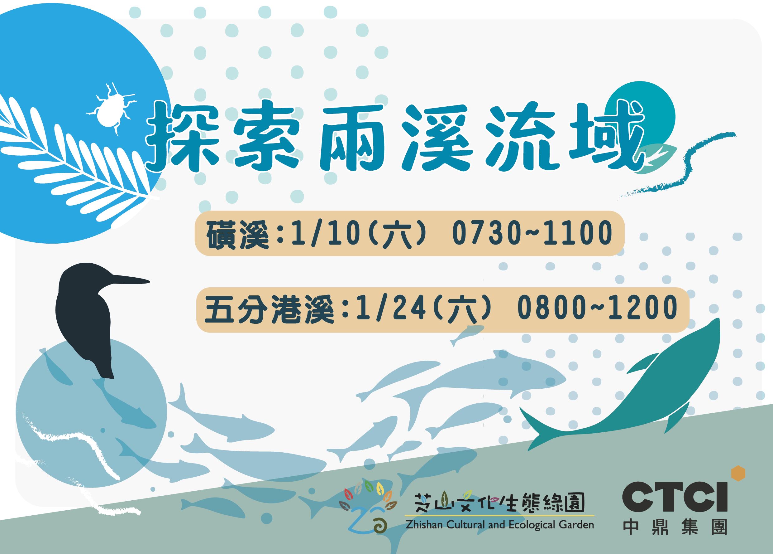 【探索兩溪流域〔1月場〕 生態調查】園區辦理兩場次河川生態探索活動, 為調查溪流周邊生物,非導覽活動~全程戶外,歡迎對生態有興趣的朋友一起加入我們哦!△ 場次一: