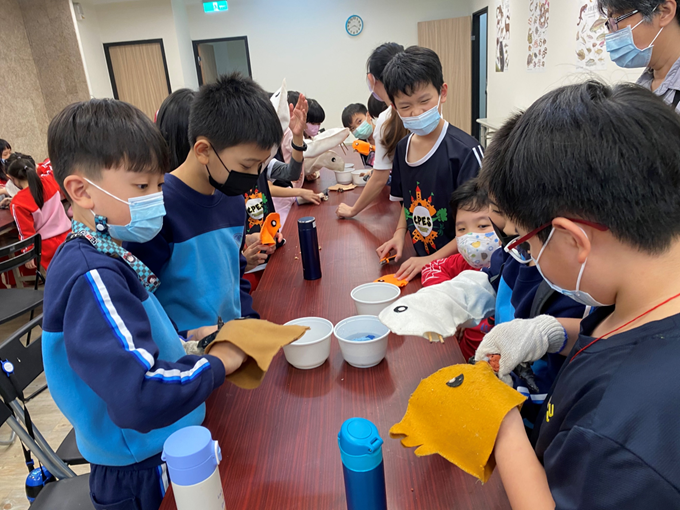 動物大使~課堂上互動 以及都市鳥類救傷故事分享 ▶活動:遊戲-鳥喙食物對對碰 學員先小組討論,假設各種不同的鳥喙適合吃的食物,再利用遊戲教具取食不同食物,藉以印證此假設。