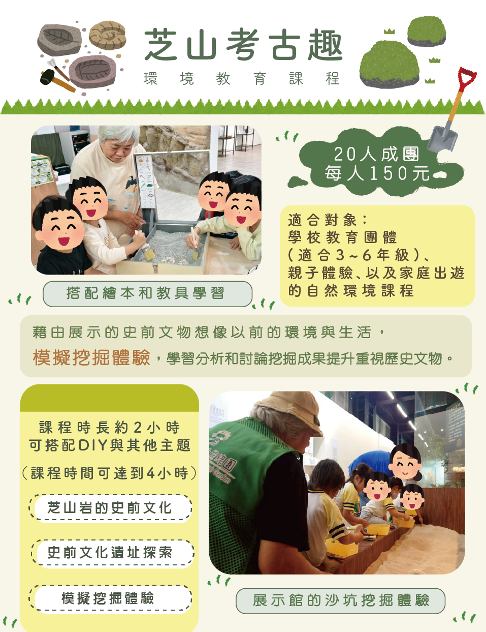 ▶藉由挖掘體驗,瞭解遺跡的可貴,進而珍惜既有的文物